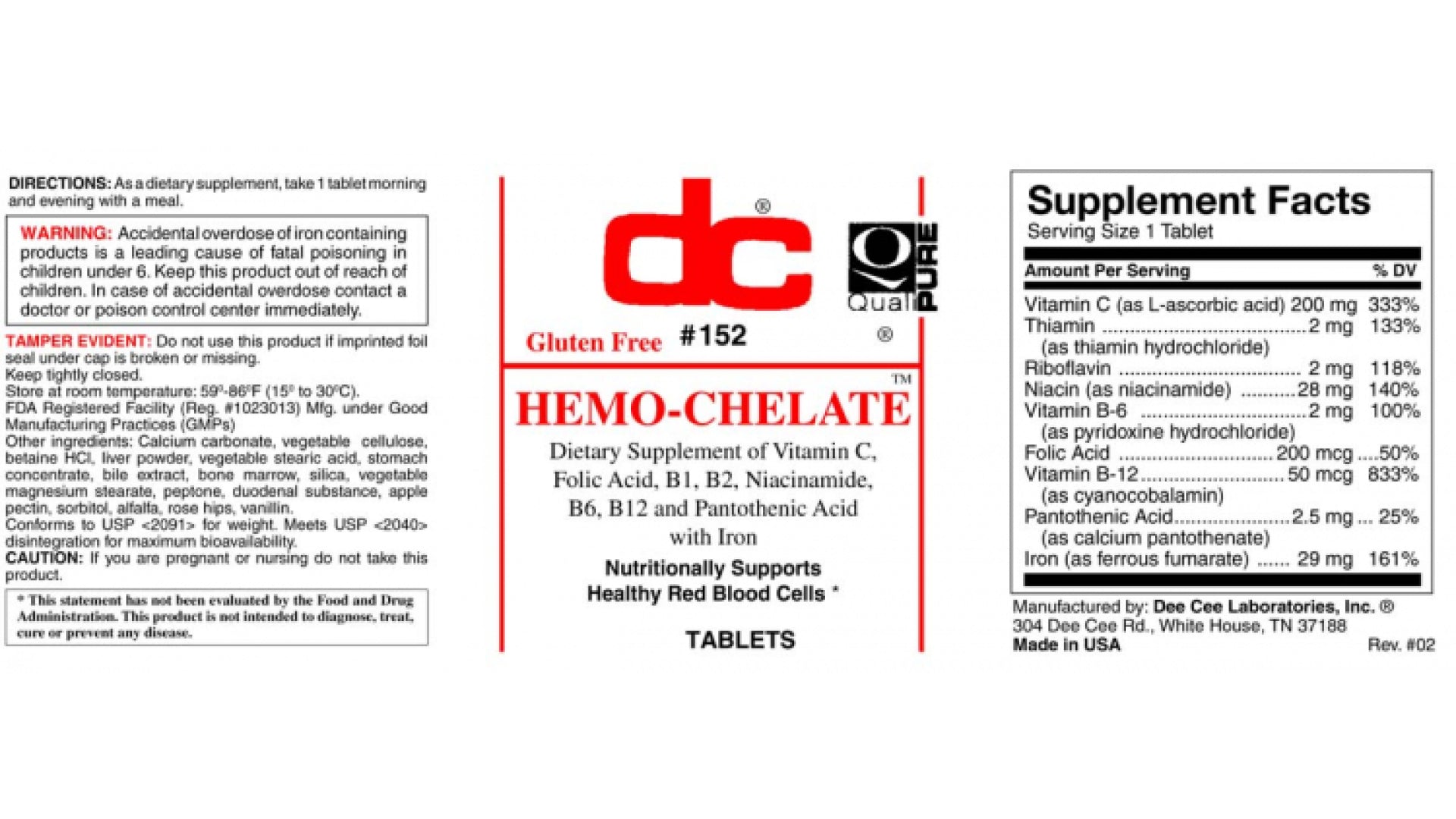 Instrucciones: Como suplemento dietético, tome 1 tableta por la mañana y por la noche con la comida. Precaución: Si está embarazada o amamantando, no tome este producto. Advertencia: Sobredosis accidental de hierro